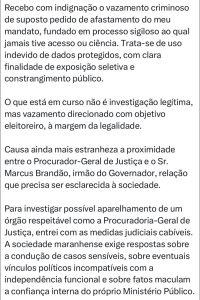 Segundo Camarão, as informações divulgadas vieram de um processo ao qual ele sequer teve acesso. Para ele, isso levanta um alerta sério sobre o uso indevido de dados protegidos por sigilo.